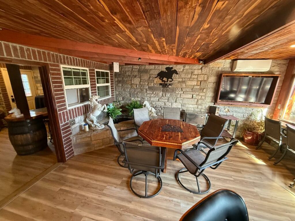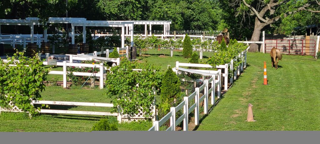 SaddleCreek Stables & Vineyard is located on 160+ acres, just off the intersections of the Santa Fe Trial, Oregon, and California Trails. On this incredible property which overlooks a tributary to the Missouri River, you will find a lighted outdoor arena and round pen along with picnic tables, fire pits, even a vineyard and honey bee hives!