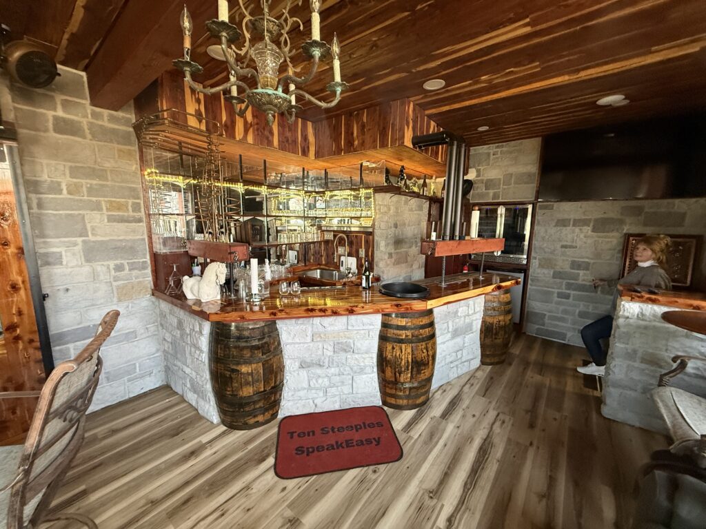 - Speak Easy – 20 capacity / access to outside patio, firepit and Galactic Monument/Koi pond